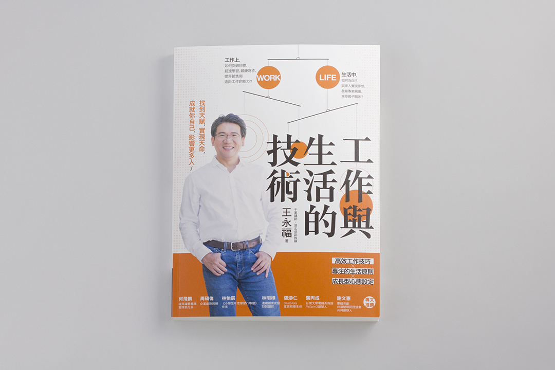 工作與生活就像是懸吊在天秤上,平衡兩者、維持相等的狀態,需要聰明的技巧。故而封面設計上採用傾斜的線條,來凸顯出兩者之間的拉扯。使用鮮明的色彩、圓滑的色塊來帶出維持兩者並非艱澀難懂的技術,只要小小的換位思考,便可協調工作與生活的重量。
