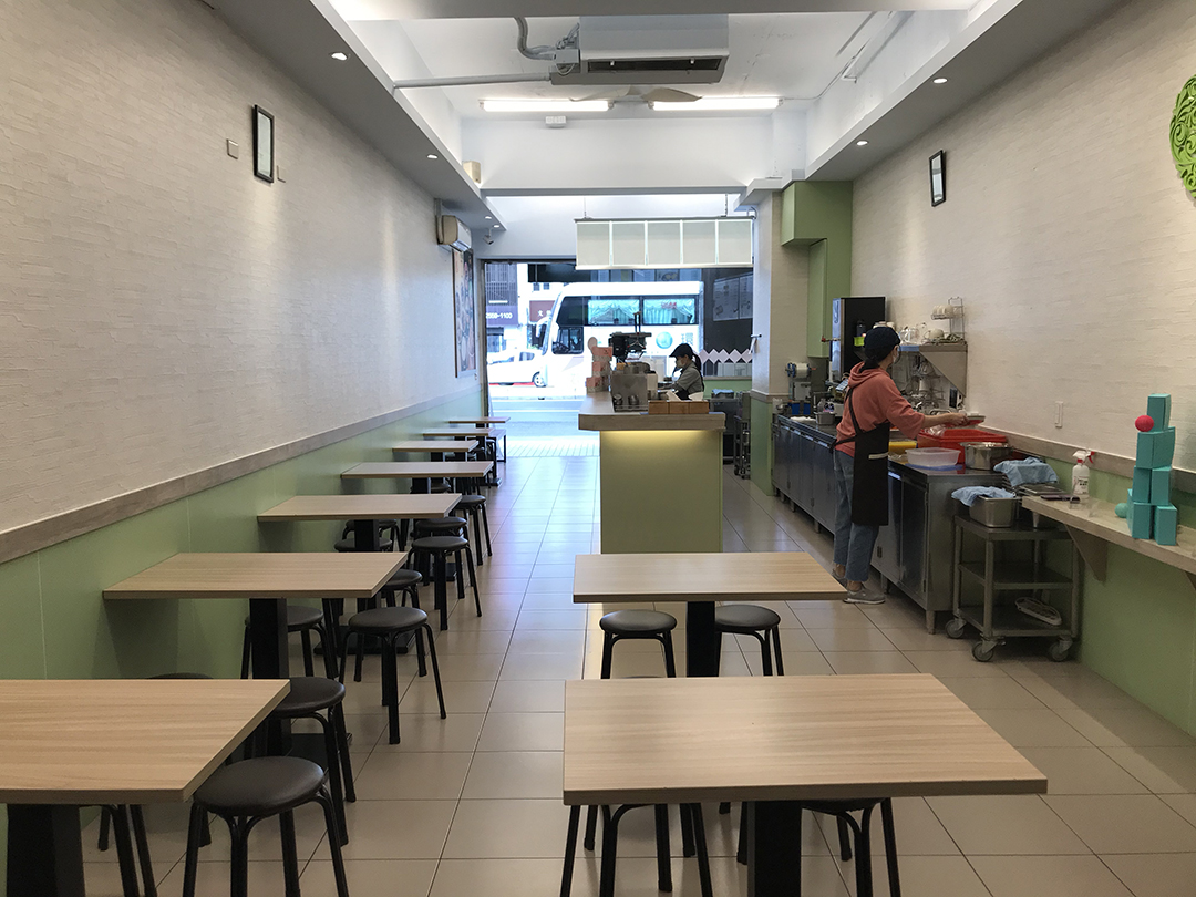 使用3000K溫暖黃燈為基調,於入口處設計人造植栽牆點綴出森活綠意;整區清水模的壁板體現出兒時記憶中的氛圍,也更有空間延伸感。兩側牆面手繪的人物與餐點插畫,搭配活動式復古窗花窗戶,在推移中可看見不同的團聚景色,也強調餐廳的特色餐點,再以文字加強意象,流露創辦人的堅持與要求。半開放式的廚房玻璃隔間,讓消費者可以望見店家用心的製作餐點,同時也在視覺上加拉長店面的景深,營造空間的通透感。方桌與圓桌的餐桌配置,提供消費者多元選擇,以發掘每個角落不同的設計巧思。